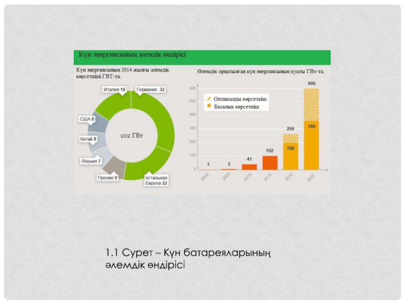 Слайд 41.1 Сурет – Күн батареяларының әлемдік өндірісі