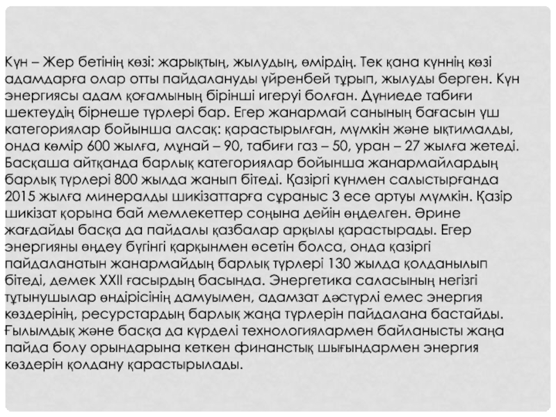 Презентация, доклад на тему Күн энергетикасы