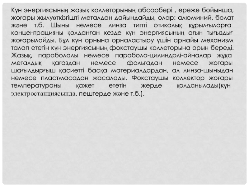 Слайд 9Күн энергиясының жазық коллеторының абсорбері , ереже бойынша, жоғары жылуөткізгішті металдан
