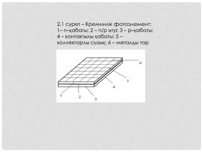 Слайд 62.1 сурет – Кремнилік фотоэлемент: 1– n–қабаты; 2 – n/p өтуі;