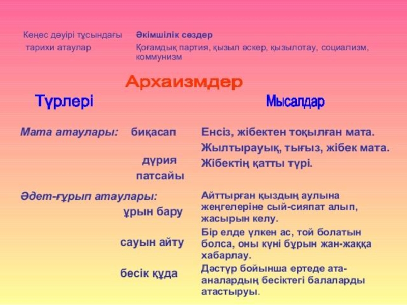 Қоғам дамуына орай тіліміздегі қолданыстан шыққан сөздер
