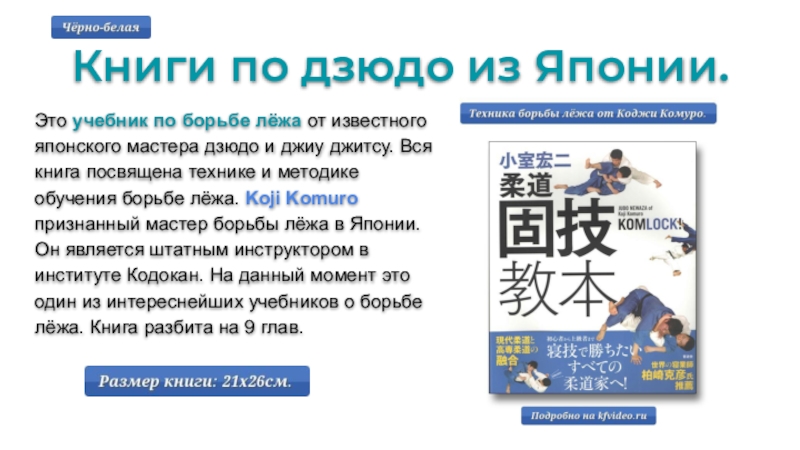 японского мастера дзюдо и джиу джитсу. Вся книга посвящена технике и методике обучения борьбе лёжа. Koji Komuro признанный мастер борьбы лёжа в Японии. Он является штатным инструктором в институте Кодокан. На данный момент это один из интереснейших учебников о борьбе лёжа. Книга разбита на 9 глав.