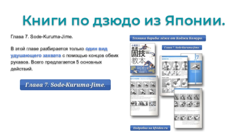 один вид удушающего захвата с помощью концов обеих рукавов. Всего предлагается 5 основных действий.