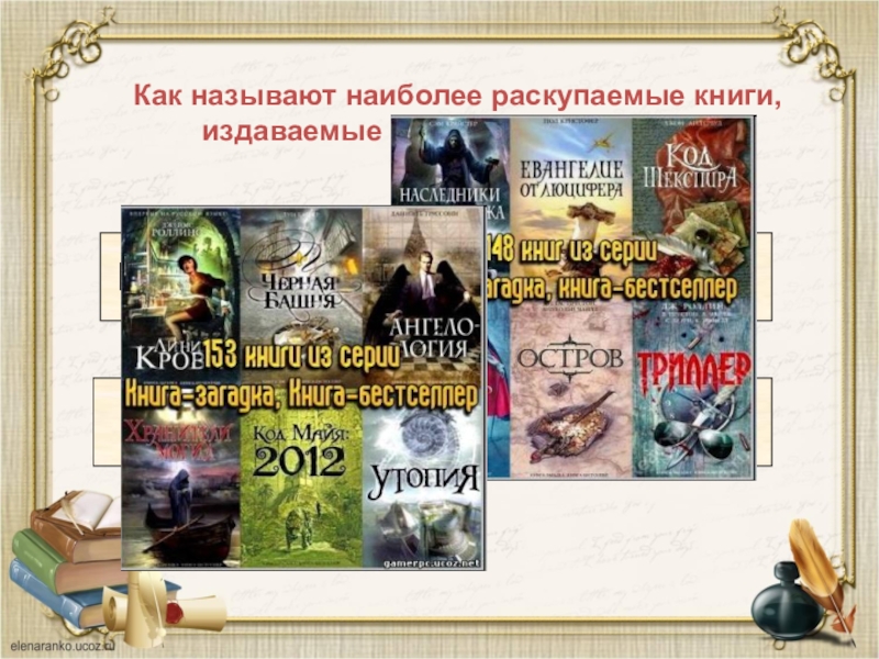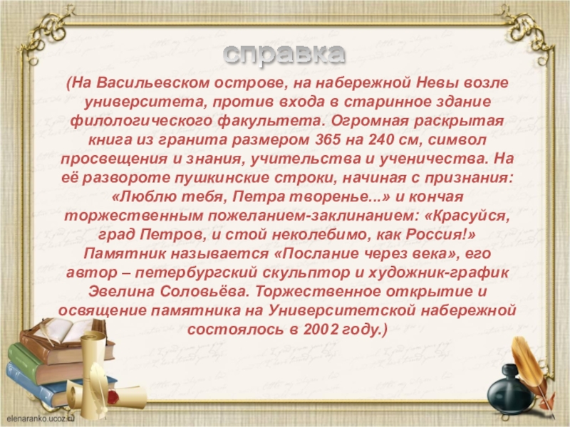 Это сайт презентаций, где можно хранить и обмениваться своими презентациями, докладами, проектами, шаблонами в формате PowerPoint с другими пользователями. Мы помогаем школьникам, студентам, учителям, преподавателям хранить и обмениваться учебными материалами.