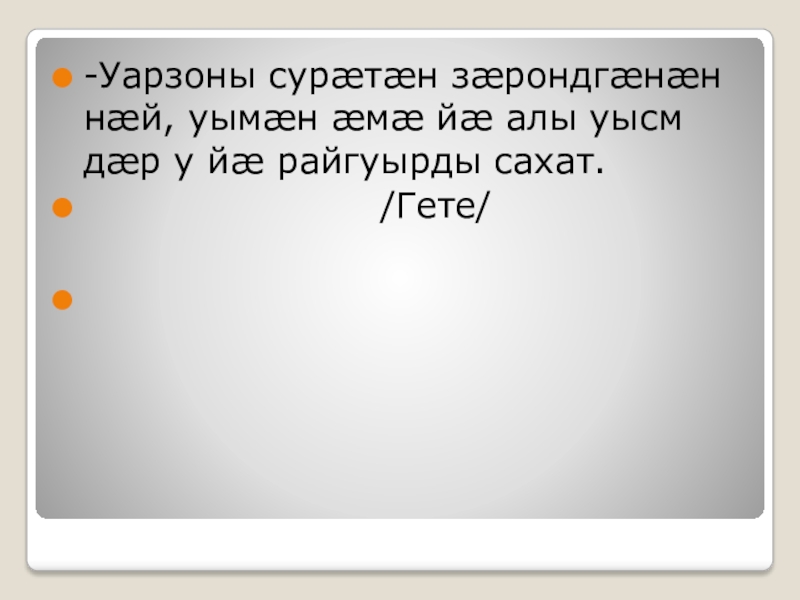 Слайд 6-Уарзоны сурæтæн зæрондгæнæн нæй, уымæн æмæ йæ алы уысм дæр у