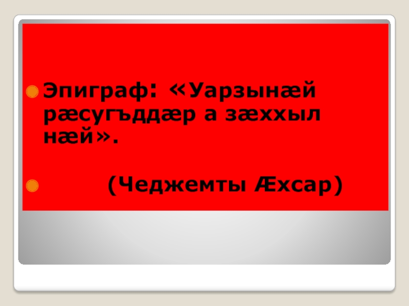 Эпиграф: «Уарзынæй рæсугъддæр а зæххыл нæй».