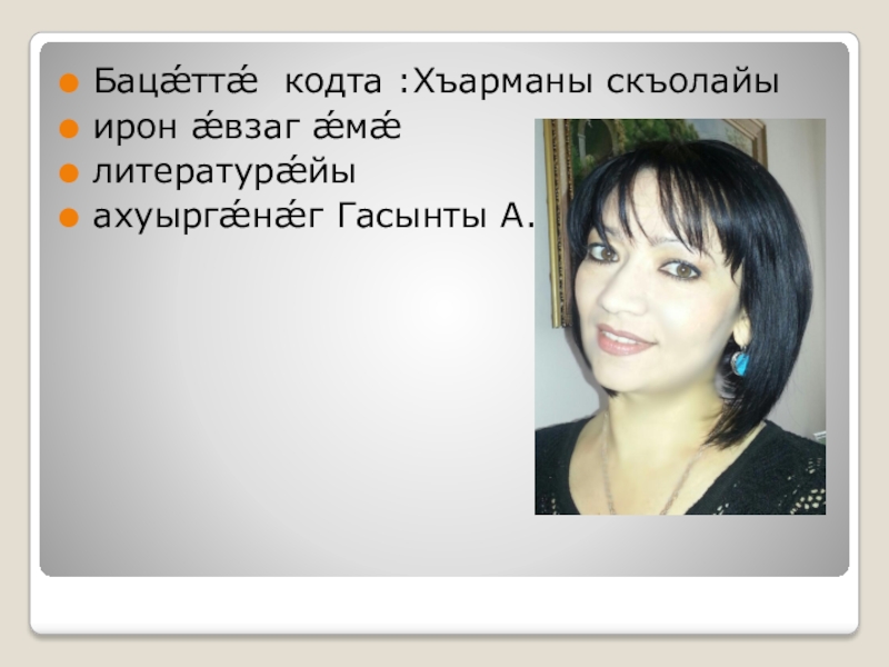 Бацǽттǽ кодта :Хъарманы скъолайыирон ǽвзаг ǽмǽлитературǽйы ахуыргǽнǽг Гасынты А.