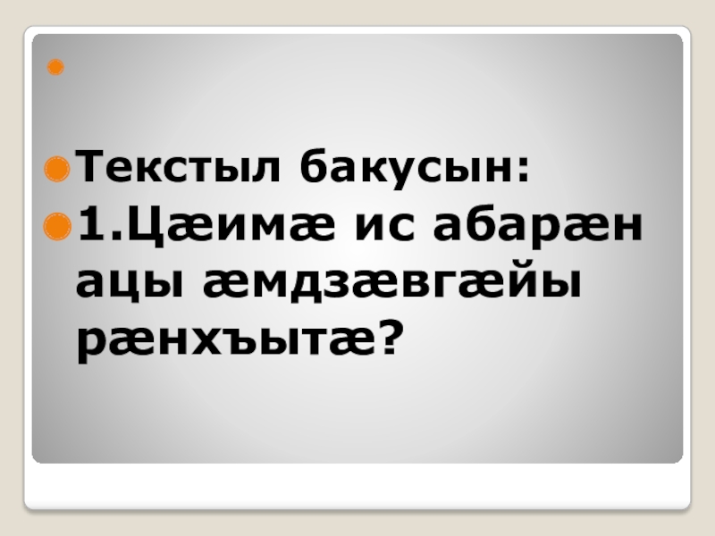 Текстыл бакусын:1.Цæимæ ис абарæн ацы æмдзæвгæйы рæнхъытæ?