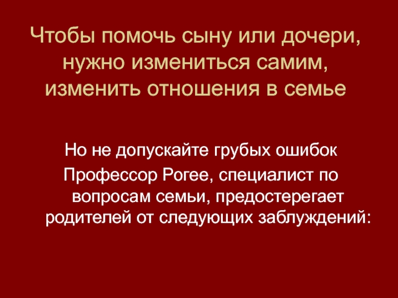 Профессор Рогее, специалист по вопросам семьи, предостерегает родителей от следующих заблуждений: