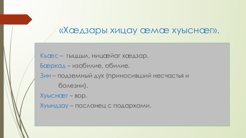 Цæвæг – коса. Уис – ам: полоса скошенной травы.