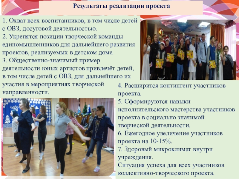 6. Ежегодное увеличение участников проекта на 10-15%.