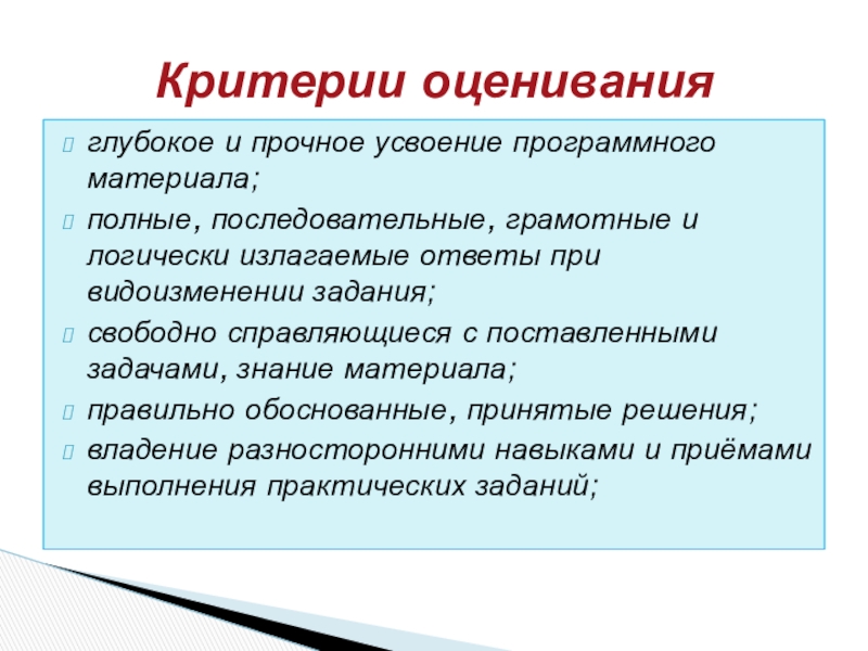 Критерии оценивания