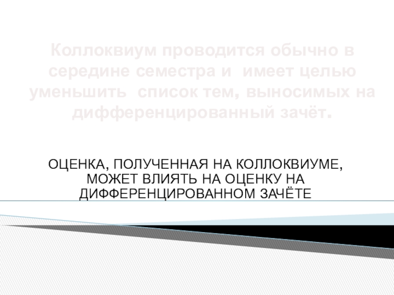 ОЦЕНКА, ПОЛУЧЕННАЯ НА КОЛЛОКВИУМЕ, МОЖЕТ ВЛИЯТЬ НА ОЦЕНКУ НА ДИФФЕРЕНЦИРОВАННОМ ЗАЧЁТЕ