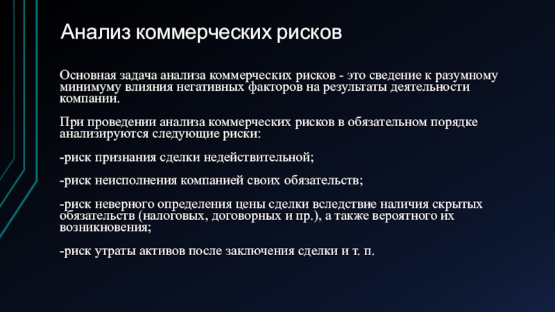 При проведении анализа коммерческих рисков в обязательном порядке анализируются следующие риски: