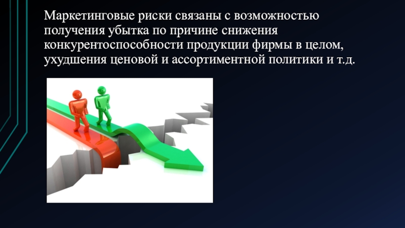 Слайд 10Маркетинговые риски связаны с возможностью получения убытка по причине снижения конкурентоспособности