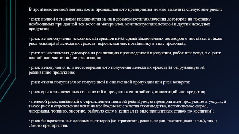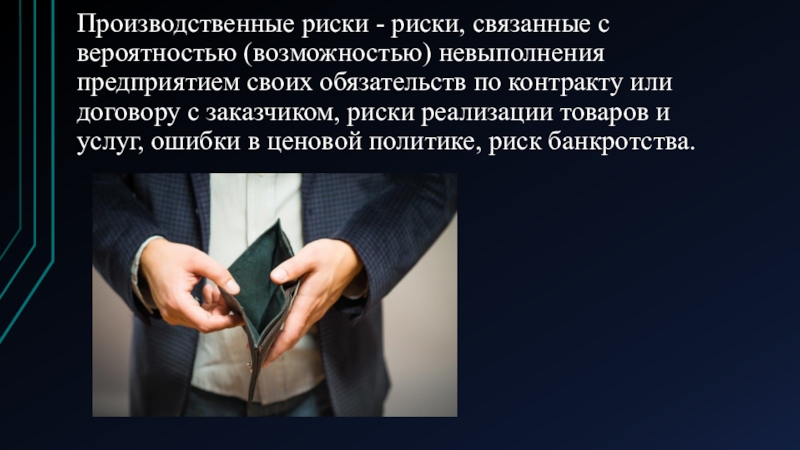 Слайд 7Производственные риски - риски, связанные с вероятностью (возможностью) невыполнения предприятием своих
