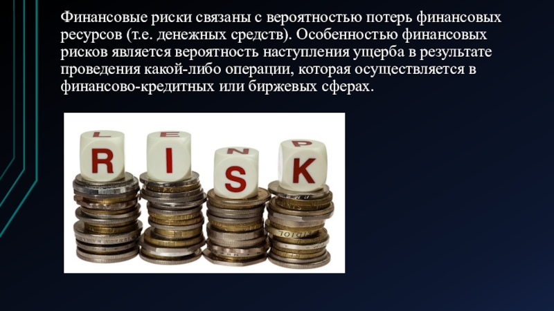 Слайд 12Финансовые риски связаны с вероятностью потерь финансовых ресурсов (т.е. денежных средств).