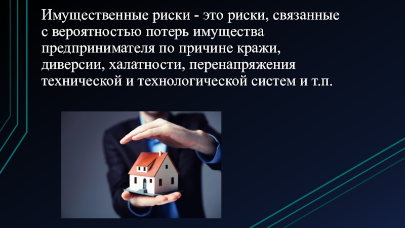 Слайд 6Имущественные риски - это риски, связанные с вероятностью потерь имущества предпринимателя