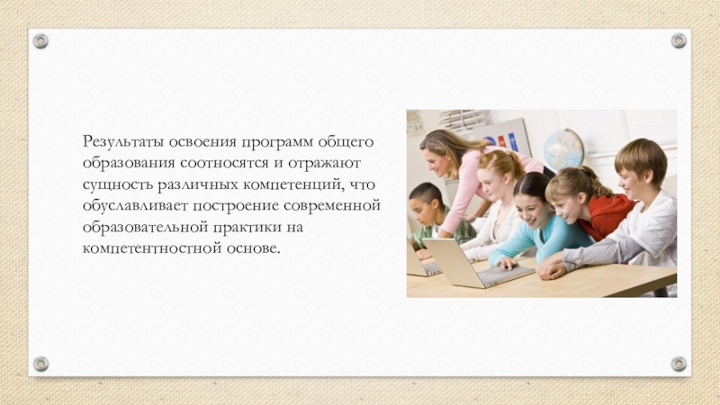 Слайд 40Результаты освоения программ общего образования соотносятся и отражают сущность различных компетенций,
