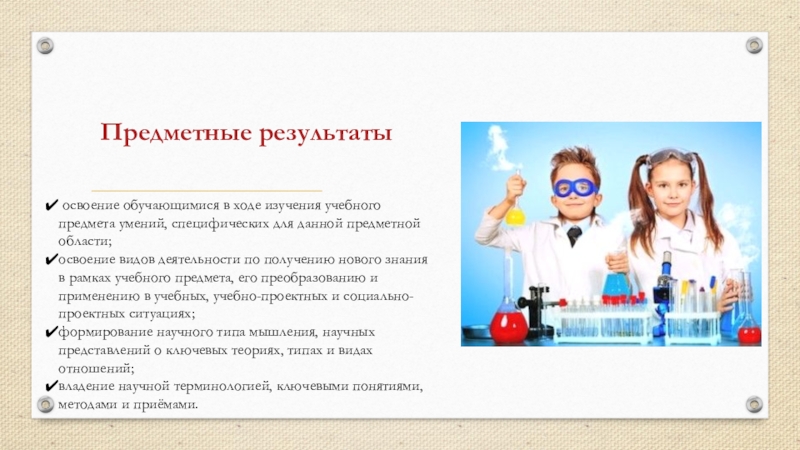 Опыт освоения учеником научной картины мира, расширяющейся до культурологического и всечеловеческого понимания мира.