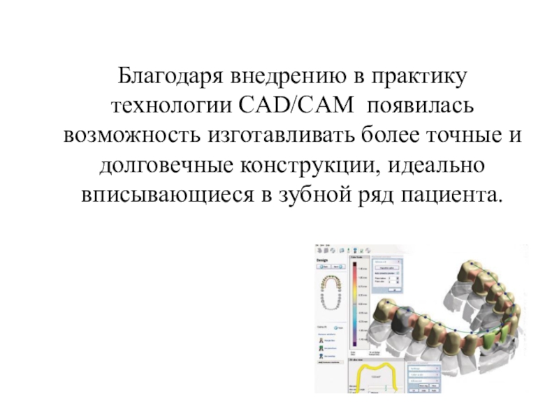 Слайд 10Благодаря внедрению в практику технологии CAD/CAM появилась возможность изготавливать более точные