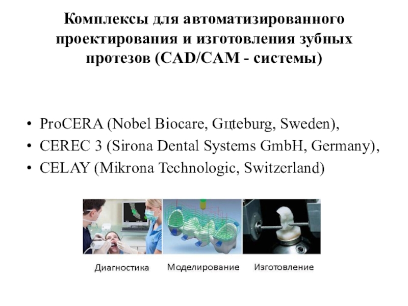 Слайд 4Комплексы для автоматизированного проектирования и изготовления зубных протезов (CAD/CAM - системы)