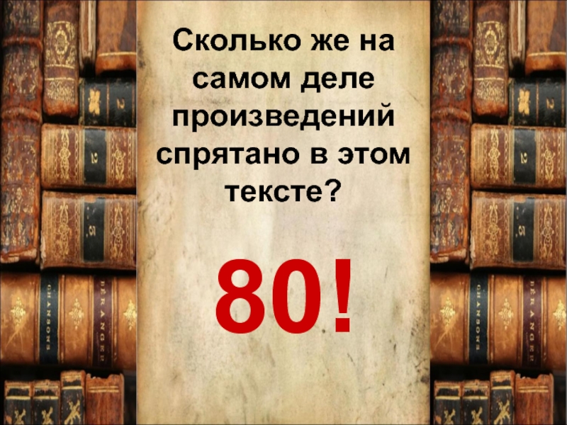 Слайд 12Сколько же на самом деле произведений спрятано в этом тексте?