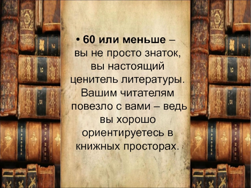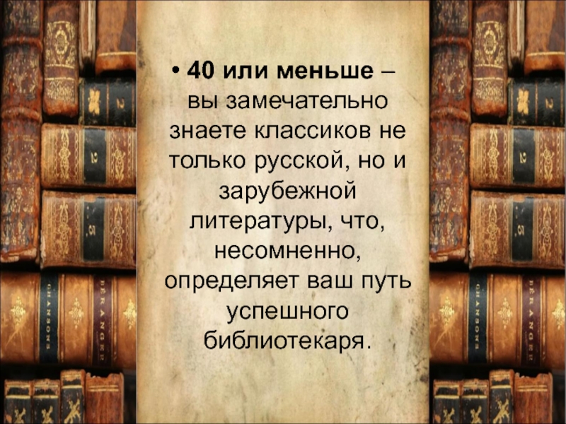 замечательно знаете классиков не только русской, но и зарубежной литературы, что, несомненно, определяет ваш путь успешного библиотекаря.