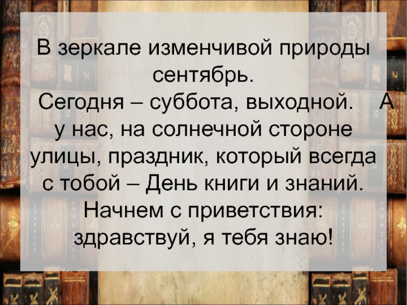 у нас, на солнечной стороне улицы, праздник, который всегда с тобой – День книги и знаний.