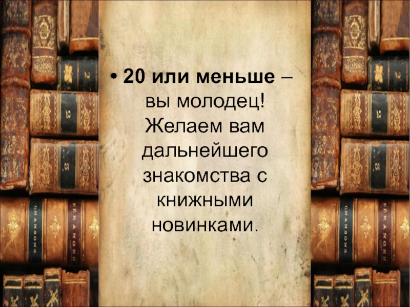 Слайд 94 20 или меньше – вы молодец! Желаем