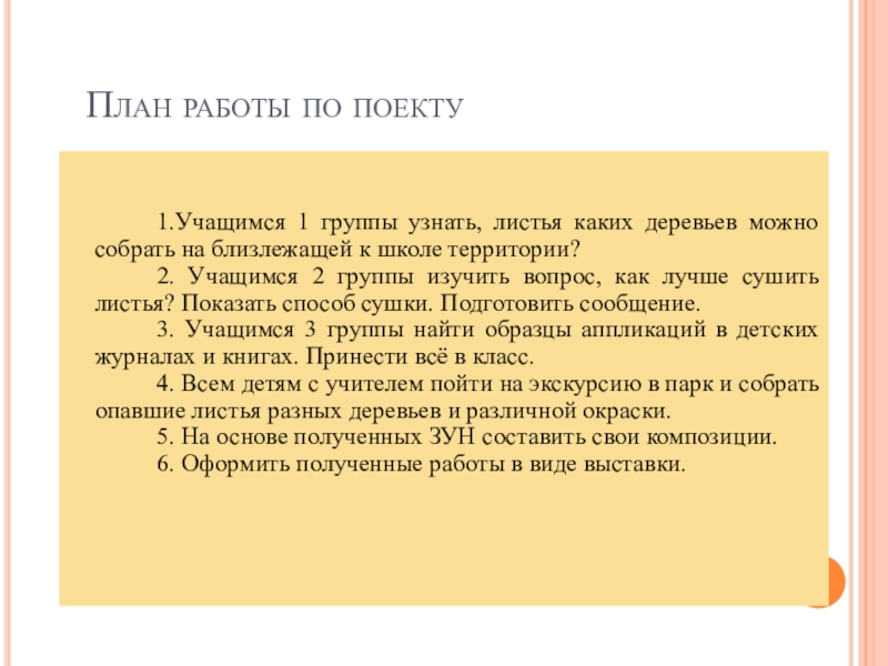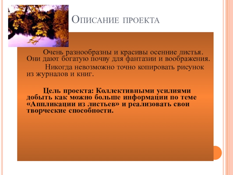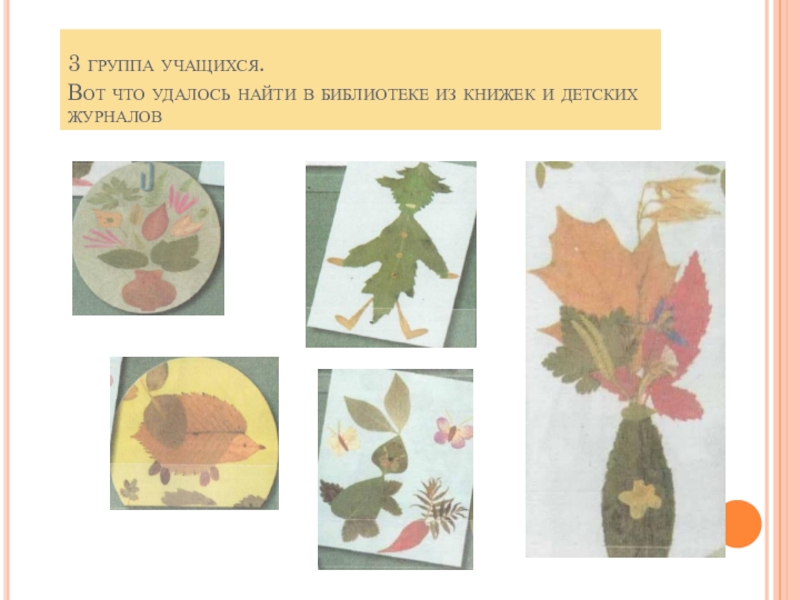Цель проекта: Коллективными усилиями добыть как можно больше информации по теме «Аппликации из листьев» и реализовать свои творческие способности.