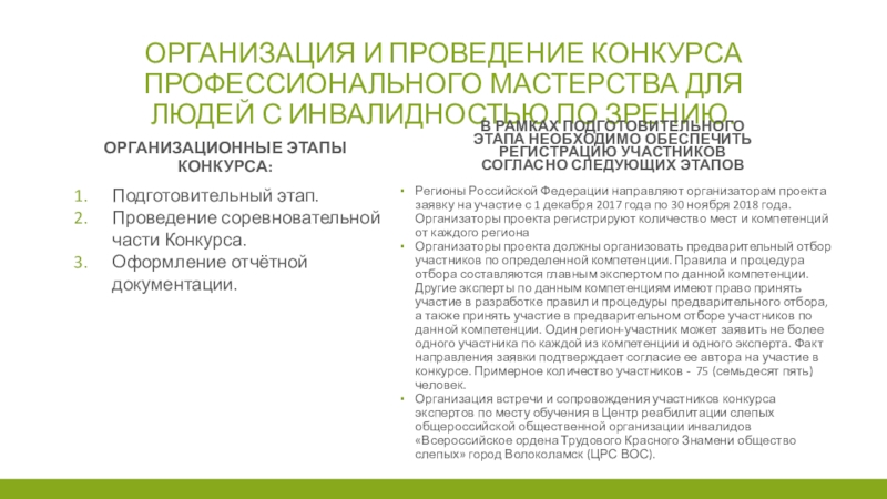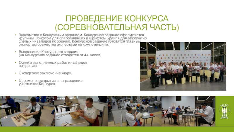 Проведение Конкурса профессионального мастерства, как инструмент профориентации, трудоустройства и повышения общественной активности людей с инвалидностью по зрению.