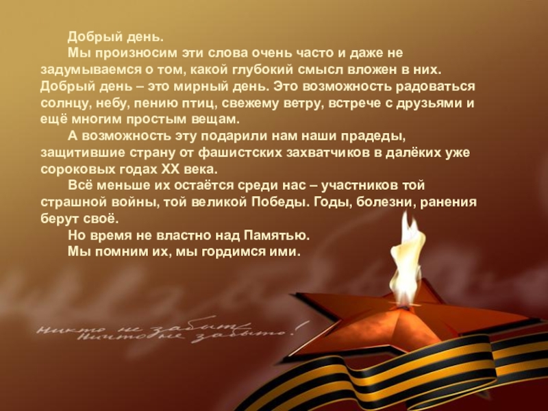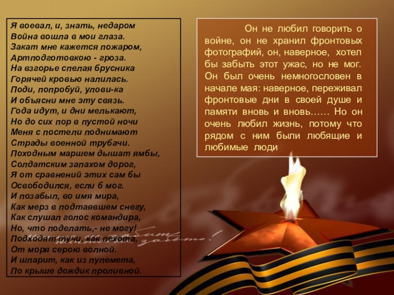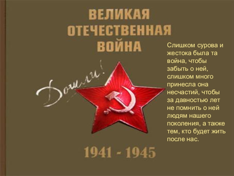 Слайд 24Слишком сурова и жестока была та война, чтобы забыть о ней,