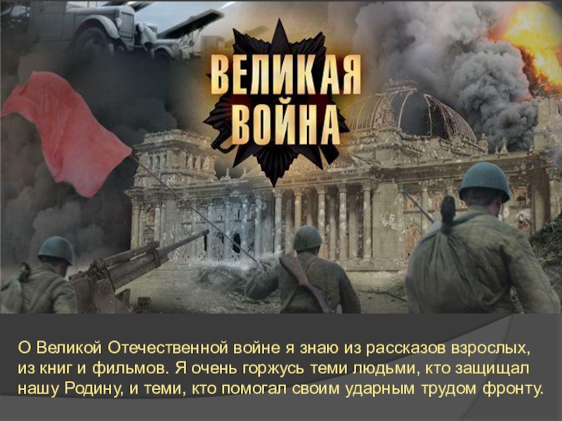 Слайд 3О Великой Отечественной войне я знаю из рассказов взрослых, из книг