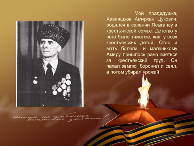 Мой прадедушка, Хаваяшхов Амирхан Цукович, родился в селении