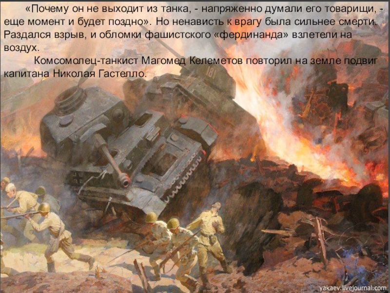 Комсомолец-танкист Магомед Келеметов повторил на земле подвиг капитана Николая Гастелло.