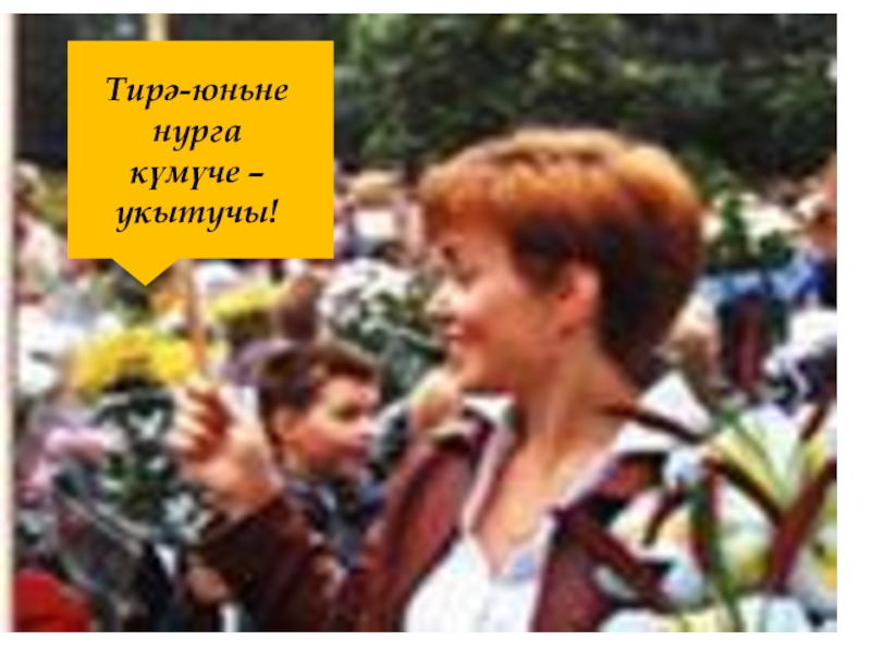Слайд 3Тирә-юньне нурга күмүче – укытучы!