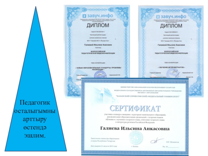 Слайд 12Педагогик осталыгымны арттыру өстендә эшлим.