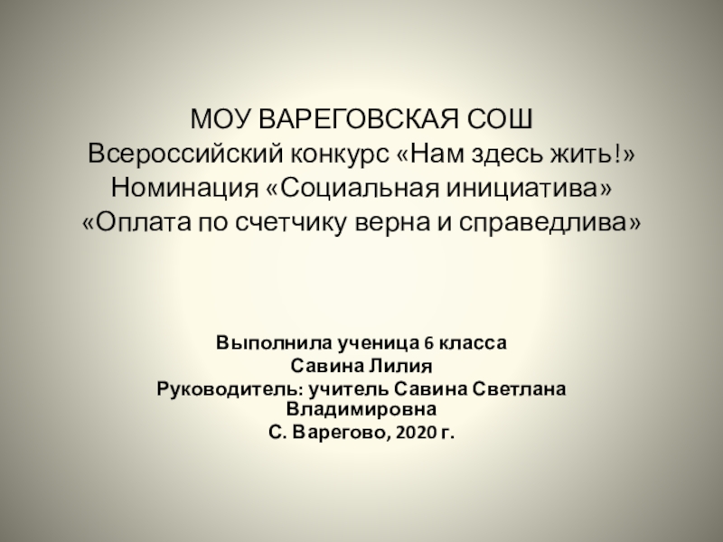 Моя социальная инициатива состоит в следующем и это будет решением насущной проблемы – это установка тепловых счетчиков и на дом и в каждую квартиру. Тогда потребитель будет четко понимать сколько Гкал он потребил и сколько он должен заплатить за предоставленную услугу. Тогда решится вопрос и с квартирами, где услуга оказывается некачественно и температура не поднимается выше 16 градусов. Население будет оплачивать только за отопительный сезон, а не круглогодично. И это будет справедливо