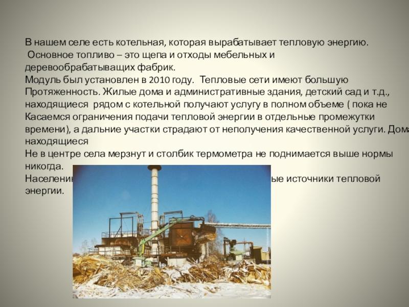 Слайд 4В нашем селе есть котельная, которая вырабатывает тепловую энергию.