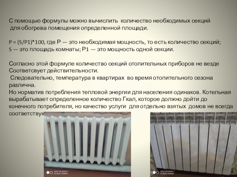 P = (S/P1)*100, где Р — это необходимая мощность, то есть количество секций;
