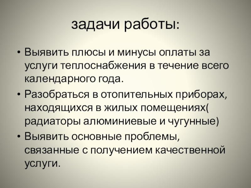 Выявить плюсы и минусы оплаты за услуги теплоснабжения в течение
