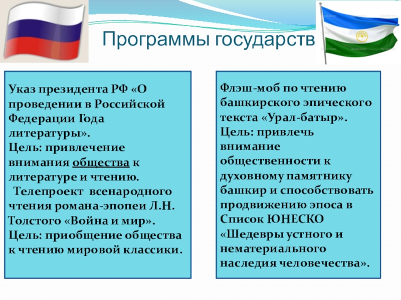 Цель: привлечь внимание общественности к духовному памятнику башкир и способствовать продвижению эпоса в Список ЮНЕСКО «Шедевры устного и нематериального наследия человечества».