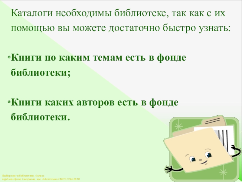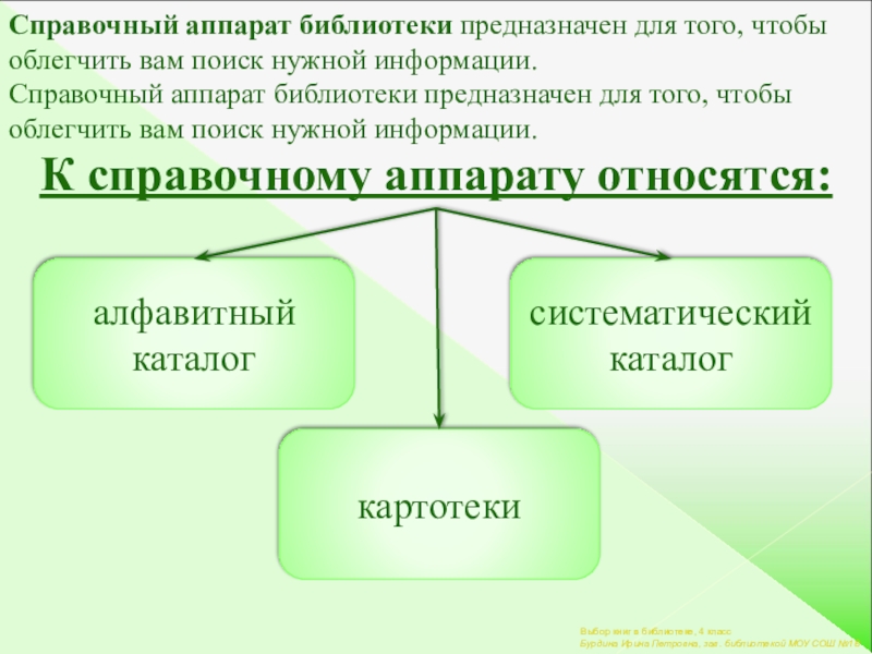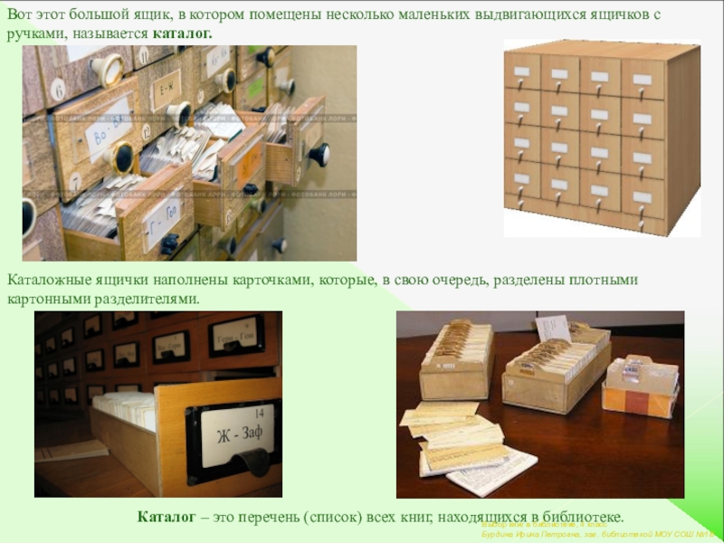 Каталог – это перечень (список) всех книг, находящихся в библиотеке.