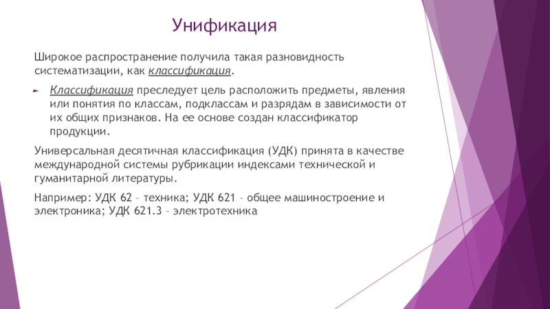 Например: УДК 62 – техника; УДК 621 – общее машиностроение и электроника; УДК 621.3 – электротехника