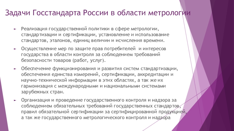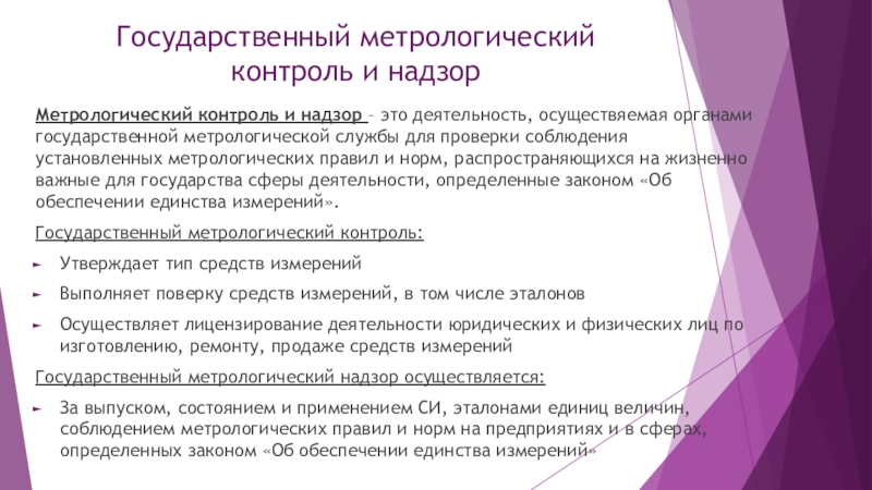 Предметом законодательной метрологии является установление обязательных технических и юридических требований по применению единиц физических величин, эталонов, методов и средств измерений, направленных на обеспечение единства необходимой точности измерений.