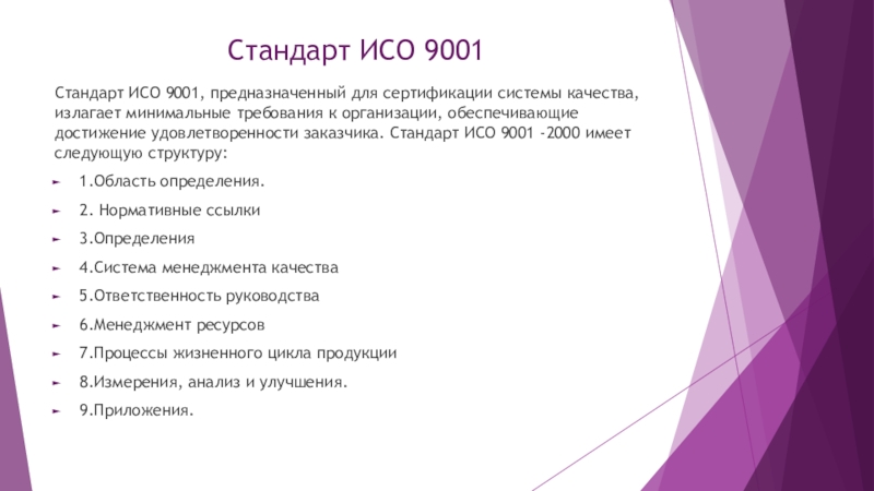 Стандарт ИСО 9001, предназначенный для сертификации системы качества, излагает