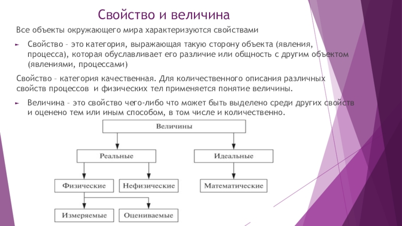 Свойство – категория качественная. Для количественного описания различных свойств процессов и физических тел применяется понятие величины.