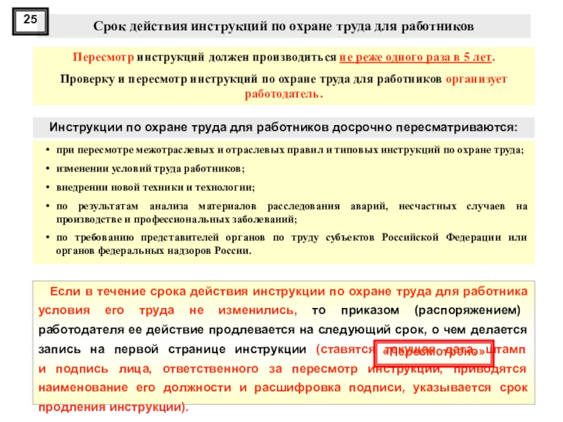 Пересмотр инструкций должен производиться не реже одного раза в 5 лет.