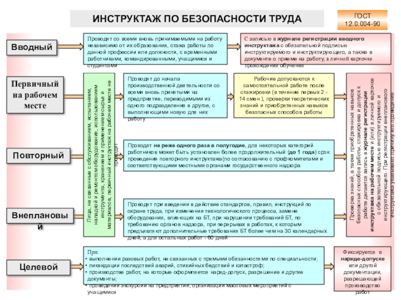 Проводят до начала производственной деятельности со всеми вновь принятыми на предприятие, переводимыми из одного подразделения в другое, с выполняющими новую для них работу